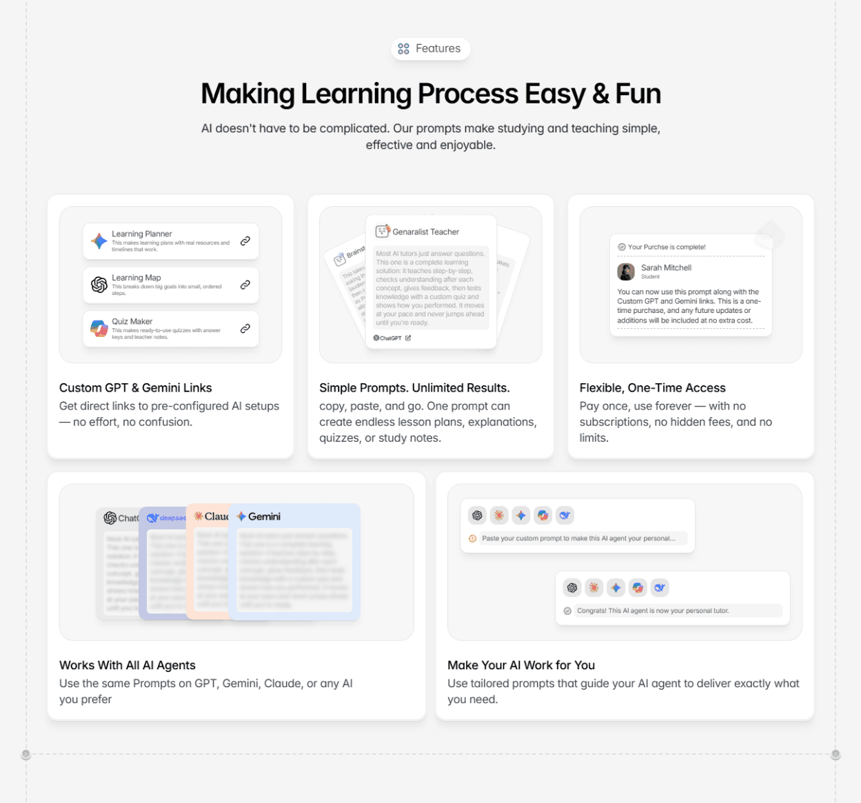 Clear presentation of the prompt packs strengthened the conversion path from visitor → buyer.